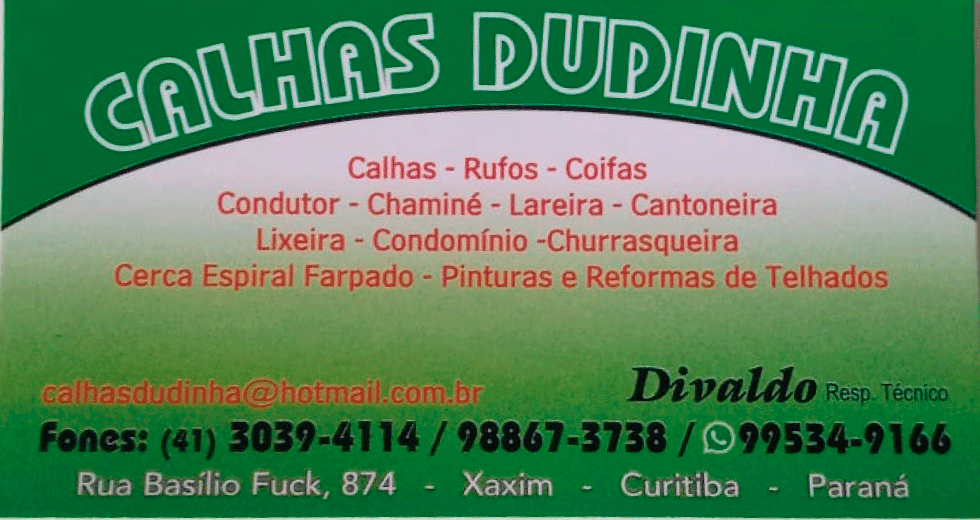 Calhas sob medidas e a seu estilo de casa. Conte com calhas Dudinha. Fale com Divaldo – 41 8867-3738...
